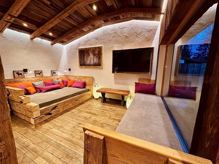 Dieses exklusive Wellness Chalet in den Bergen vereint traditionelle Handwerkskunst mit modernem Komfort: